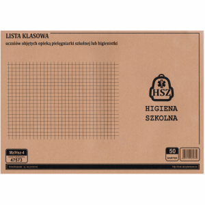 Mz/Hsz-4 (nr kat. 47573) - wersja uproszczona, węższe rubryki, mniej miejsca na dane ucznia, uproszczone rubryki do badań przesiewowych, fluoryzacja i szczepienia. 1 kartka wystarcza na 20 wpisów (druk 1-stronny)