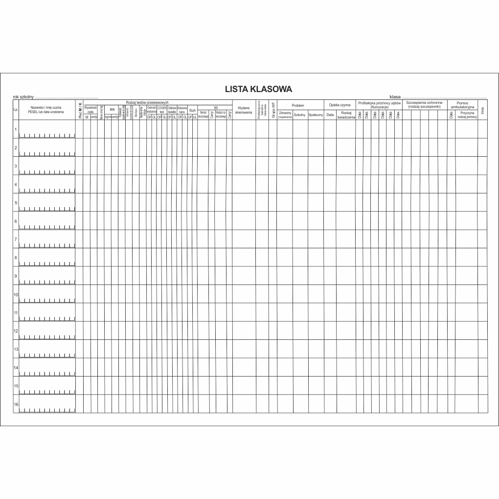 Lista klasowa stanowi dokumentację wewnętrzną szkoły i dane w niej zawarte podlegają ochronie zgodnie z zasadami RODO oraz tajemnicy medycznej.