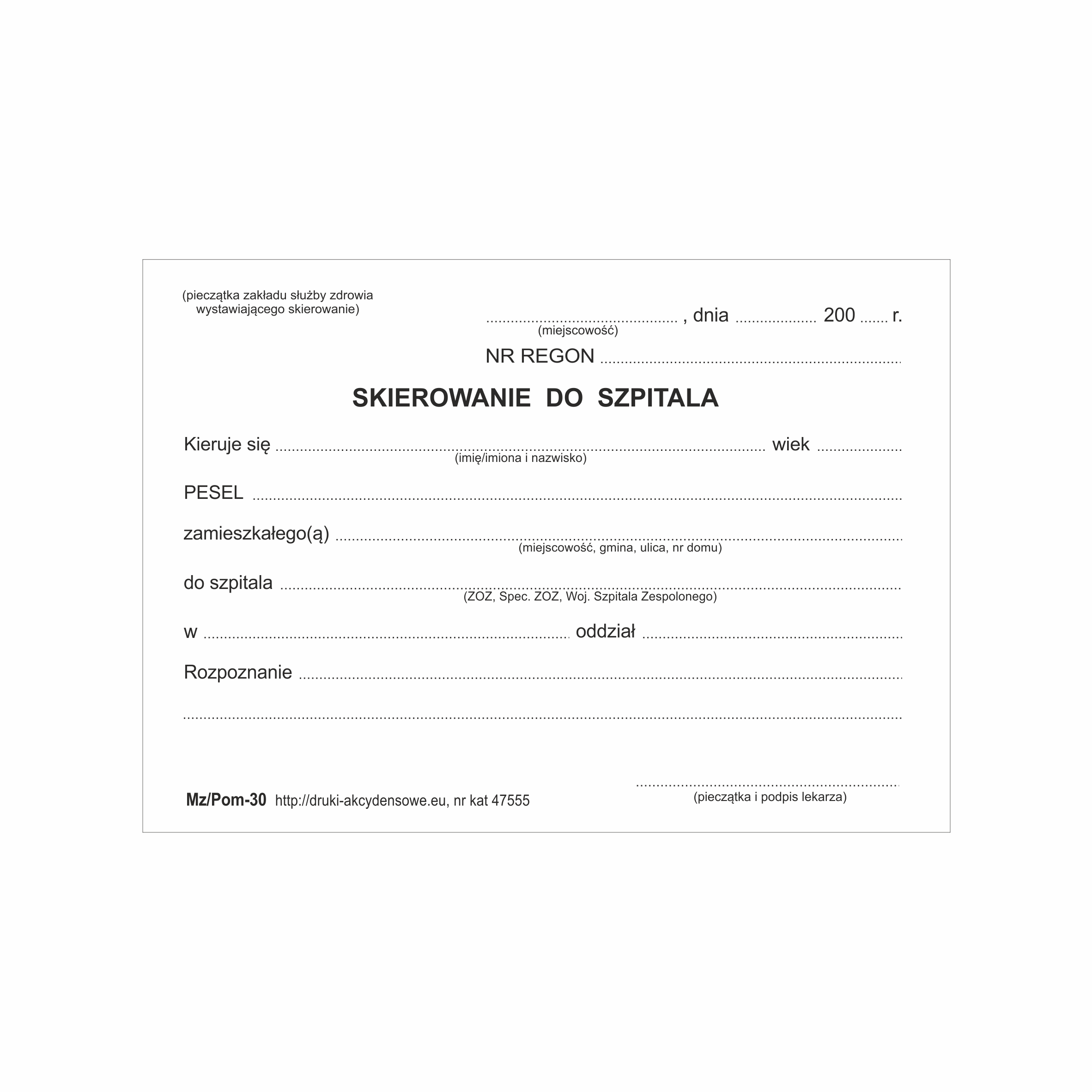 Druk służy do wydania skierowania pacjenta do szpitala w celu udzielenia świadczenia medycznego. Jest to stary, wzór druku, równolegle używa się nowszego wzoru NFZ, o symbolu Mz/Ffz-4.
