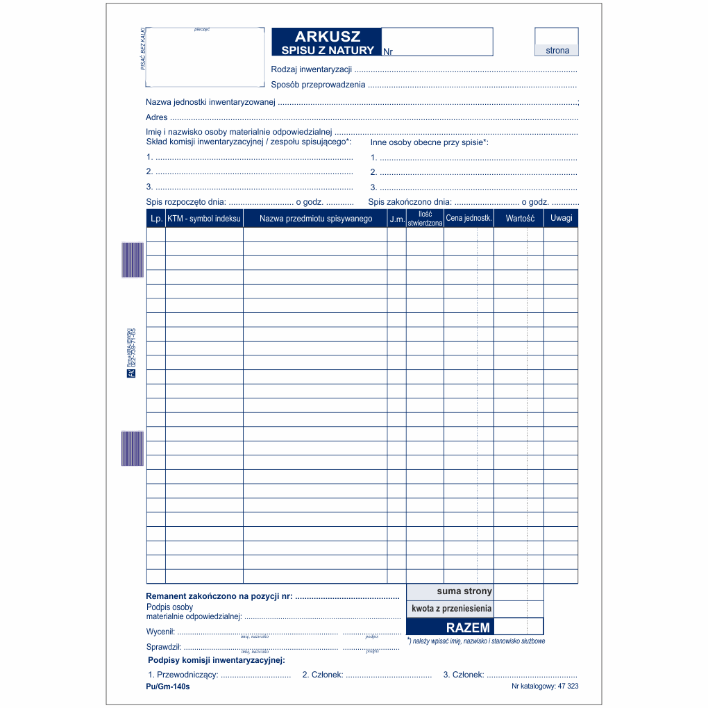 Arkusz Spisu z natury / wersja samokopiująca [Pu/Gm-140s]