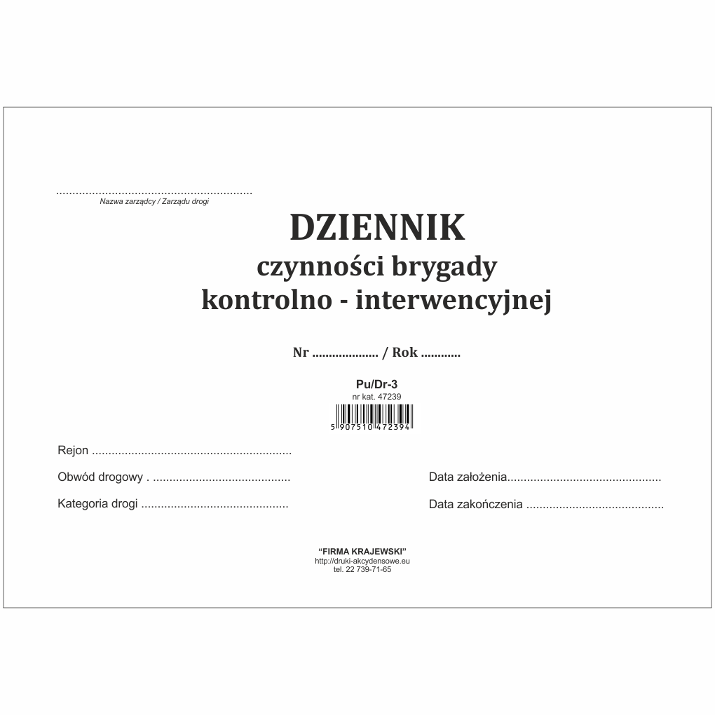 Dziennik jest przeznaczony do rejestrowania przez brygadę patrolowo-interwenycyjną czynności wykonanych w terenie oraz zużytych materiałów.