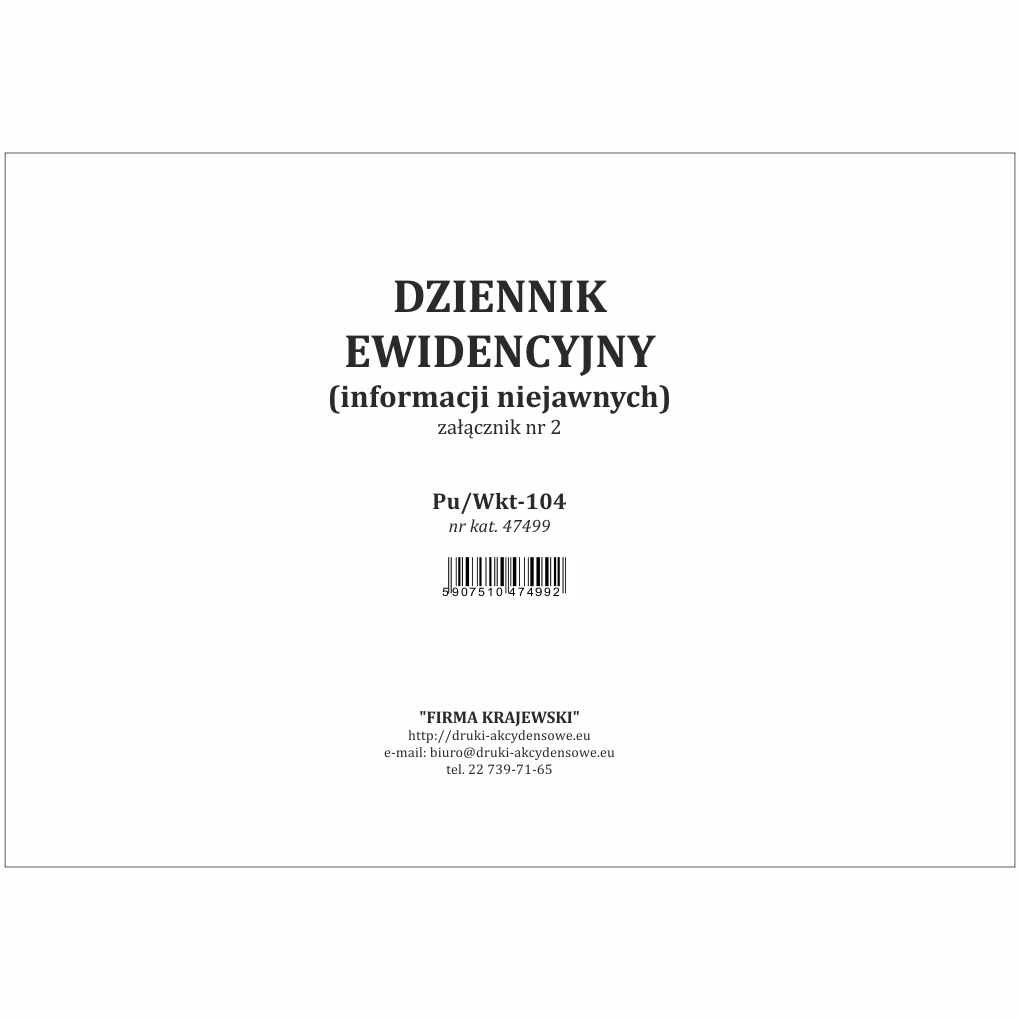 Dziennik ewidencyjny informacji niejawnych [Pu/Wkt-104]