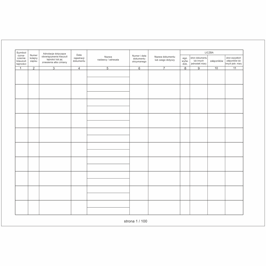 - Układ i nazwy rubryk zgodne z załącznikiem do dziennika ustaw,