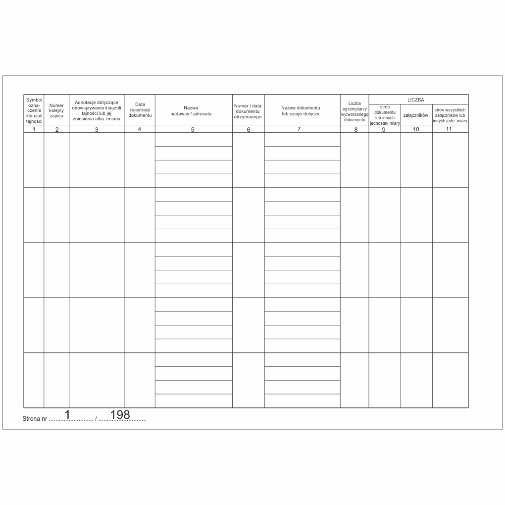 Książka jest przeznaczona dla kancelarii tajnych, służy do ewidencjonowania dokumentów i innych nośników zawierających informacje niejawne oraz do ewidencjonowania osób mających bezpośredni dostęp do nich oraz ruchu tych dokumentów na terenie jednostki organizacyjnej oraz poza nią.