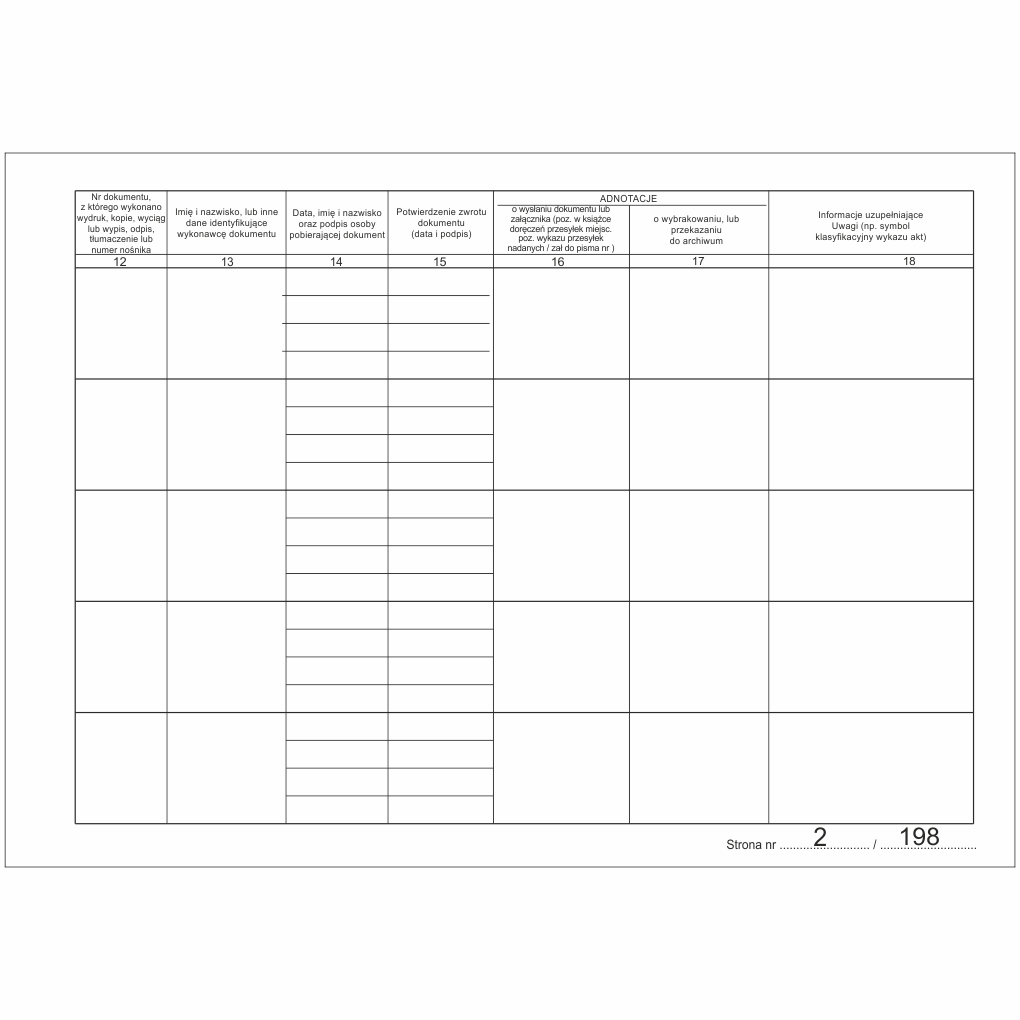 - Adnotacje o wybrakowaniu, lub przekazaniu do archiwum