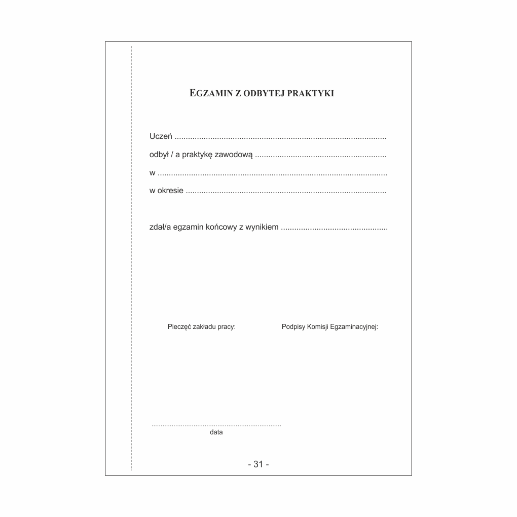 - Protokół z egzaminu z odbytej praktyki (1 strona)