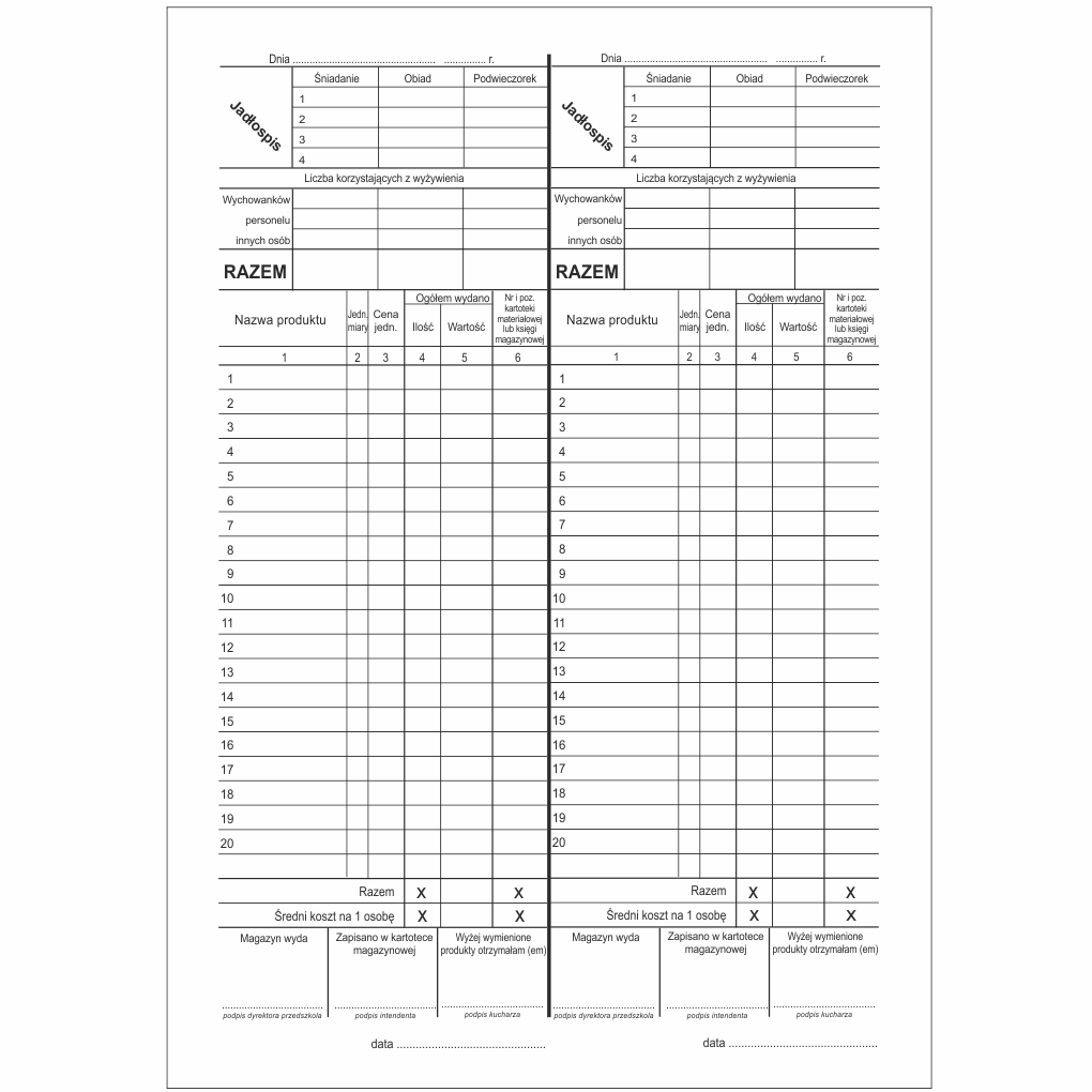 Druk przeznaczony dla przedszkoli, punktów przedszkolnych oraz żłobków, które zajmują się serwowaniem posiłków dla dzieci.