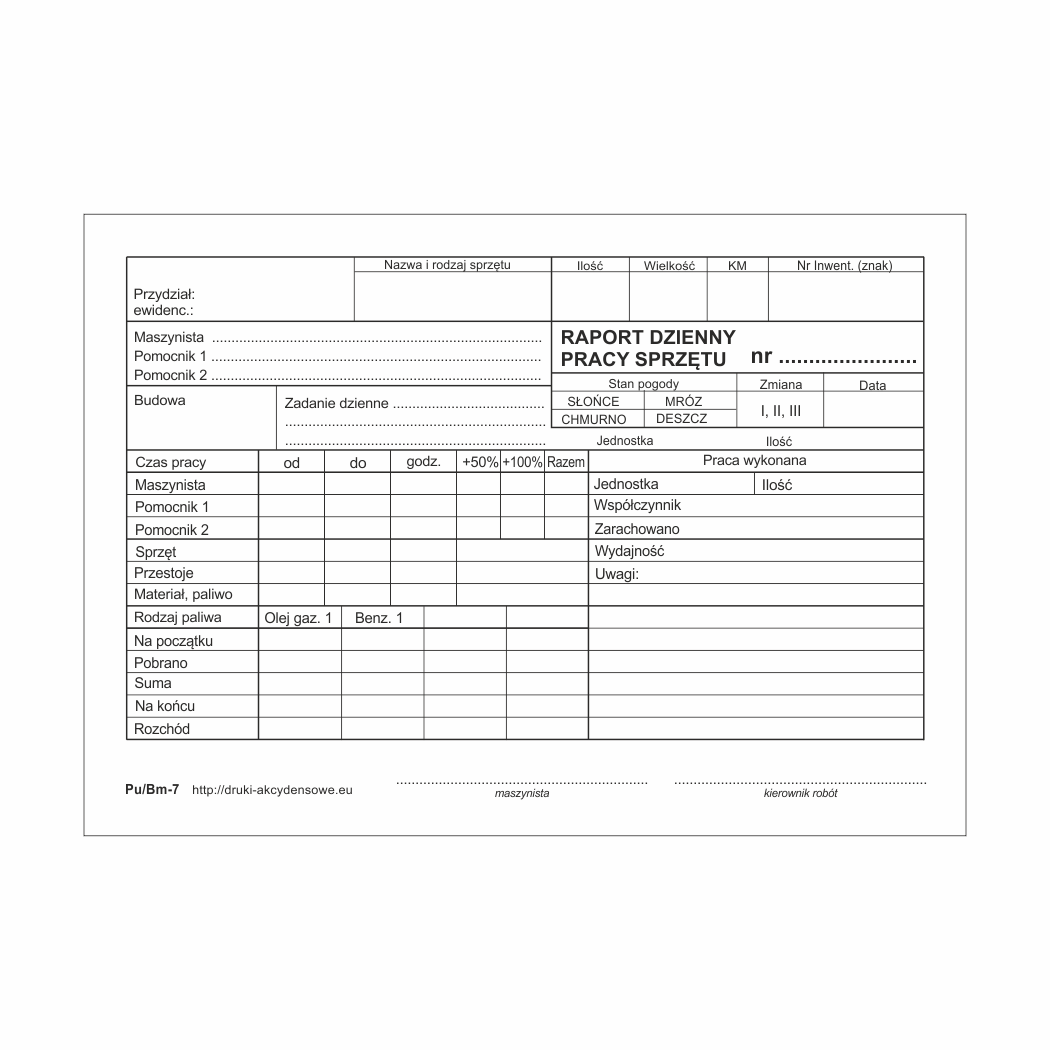 Dzienny raport pracy sprzętu [Pu/Bm-7],
