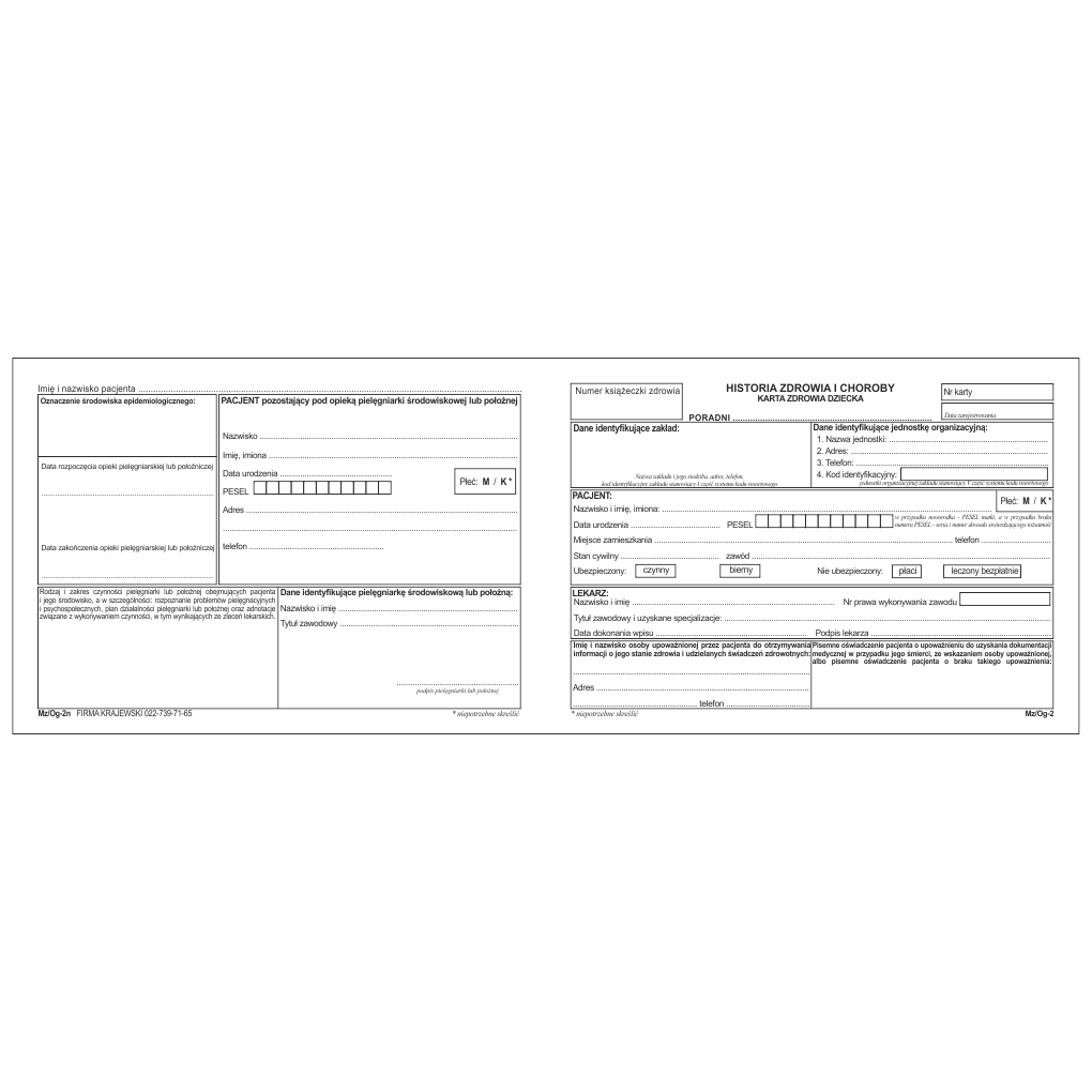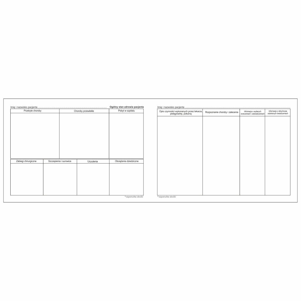 - Druk historii choroby, zgodny ze wzorem Ministerstwa Zdrowia i NFZ.