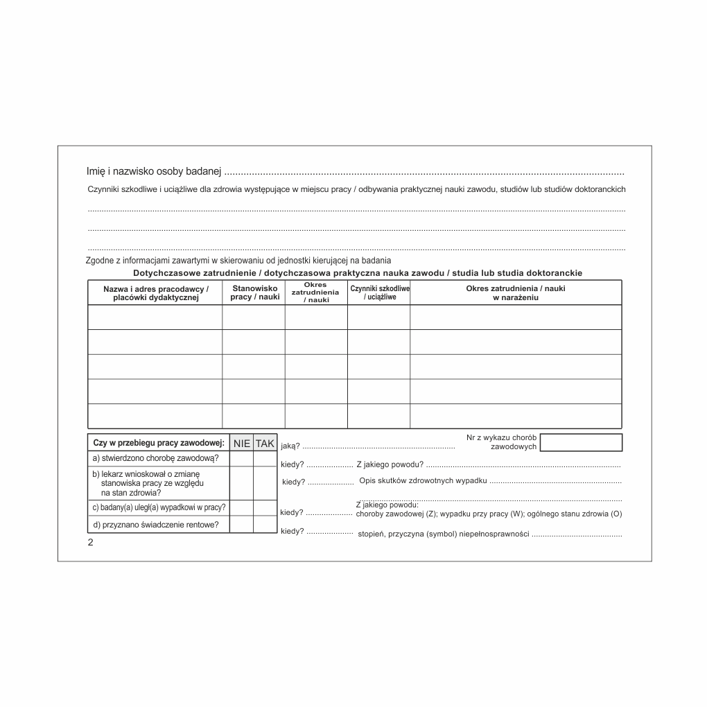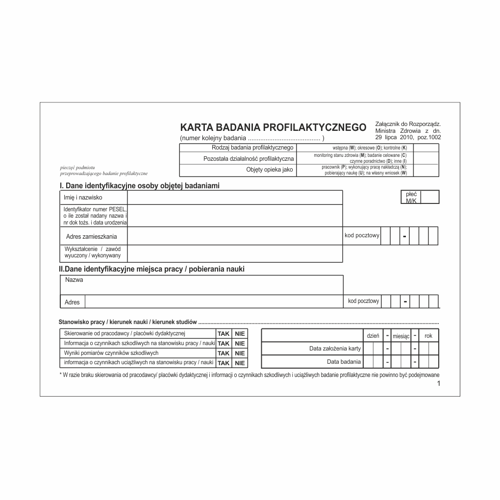 Karta badania profilaktycznego (2010.1002) [Mz/Lp-10]