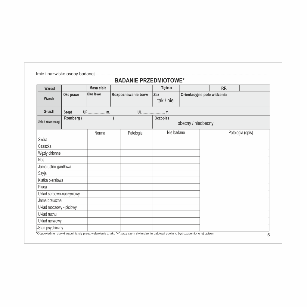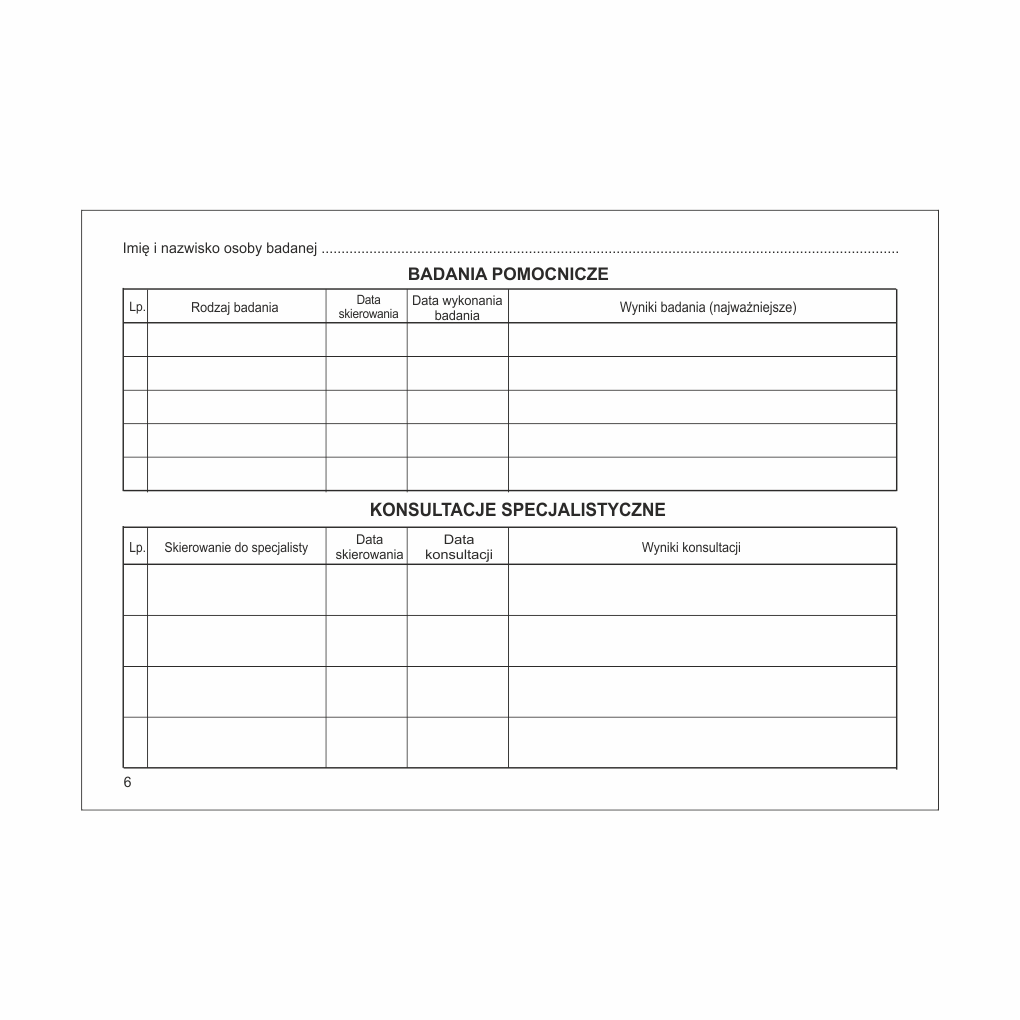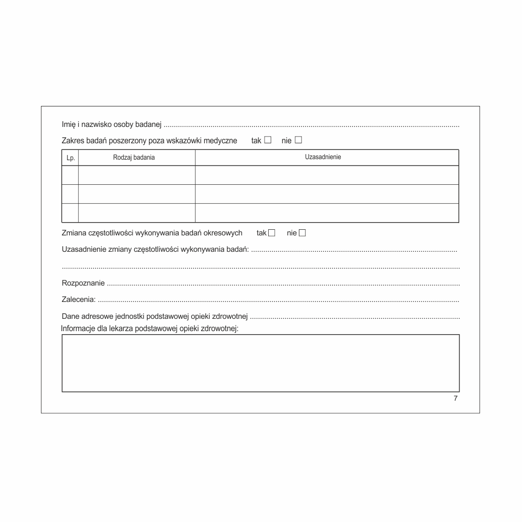 Karta badania profilaktycznego [Mz/Lp-10]