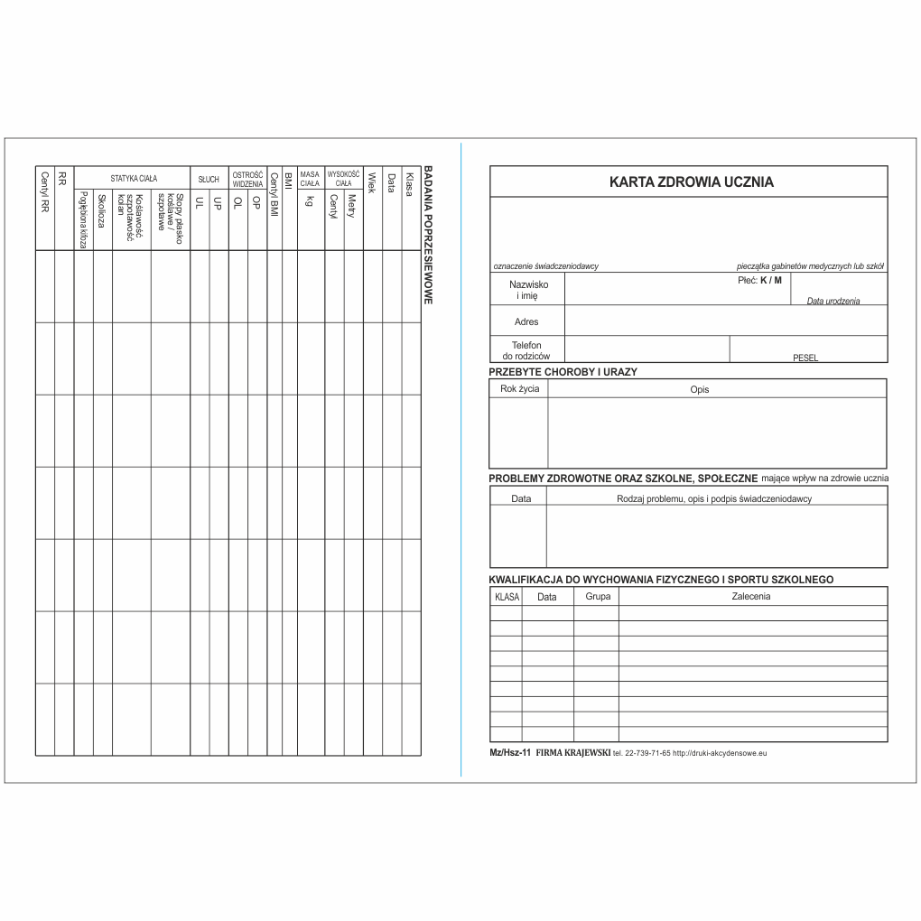 Karta zdrowia ucznia [Mz/Hsz-11]