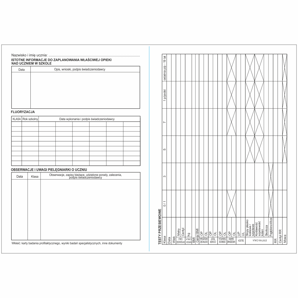 - Obserwacje i uwagi pielęgniarki o uczniu