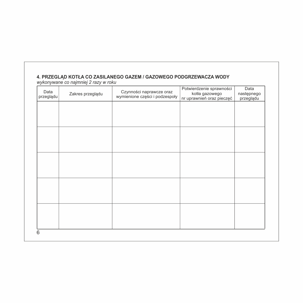| Instalacja gazowa - gazomierz | 1 x rok |