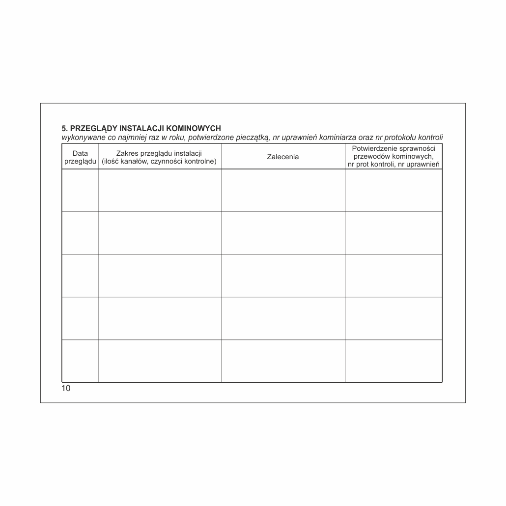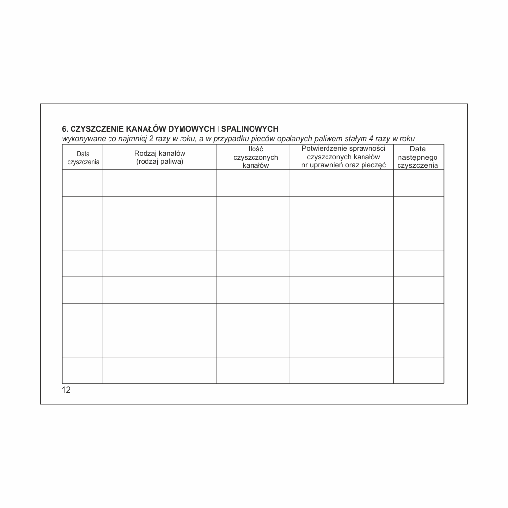 | Pzrewody kominowe spalinowe / paliwo stałe | 4 x rok |