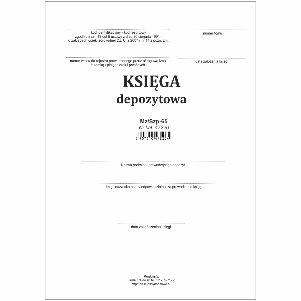 Księga jest przeznaczona dla szpitali i innych placówek leczenia zamkniętego, do rejestrowania depozytów pacjentów. Obowiązkowej rejestracji podlegają przedmioty wartościowe, a sposób postępowania z depozytami określa