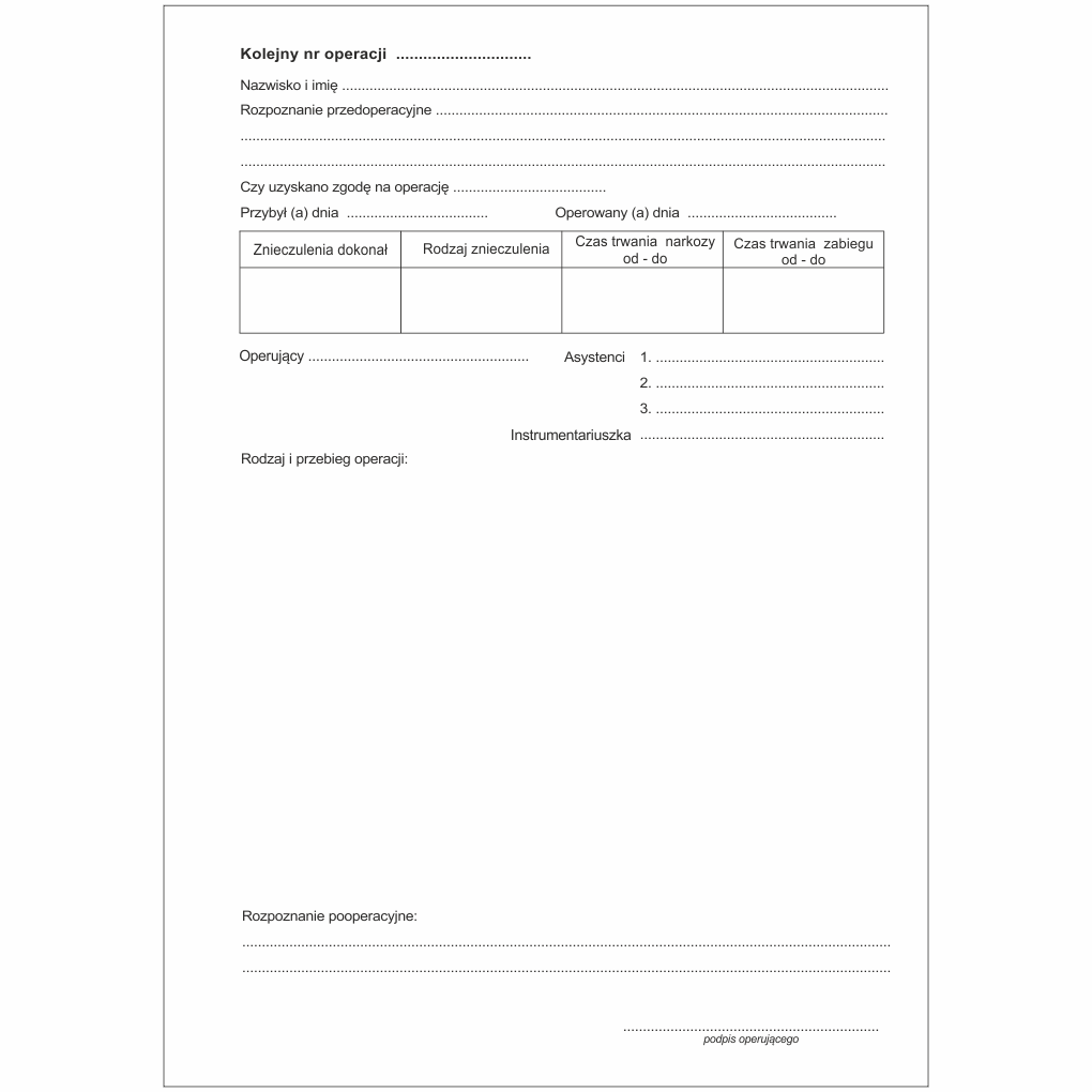 - Podpis operującego
