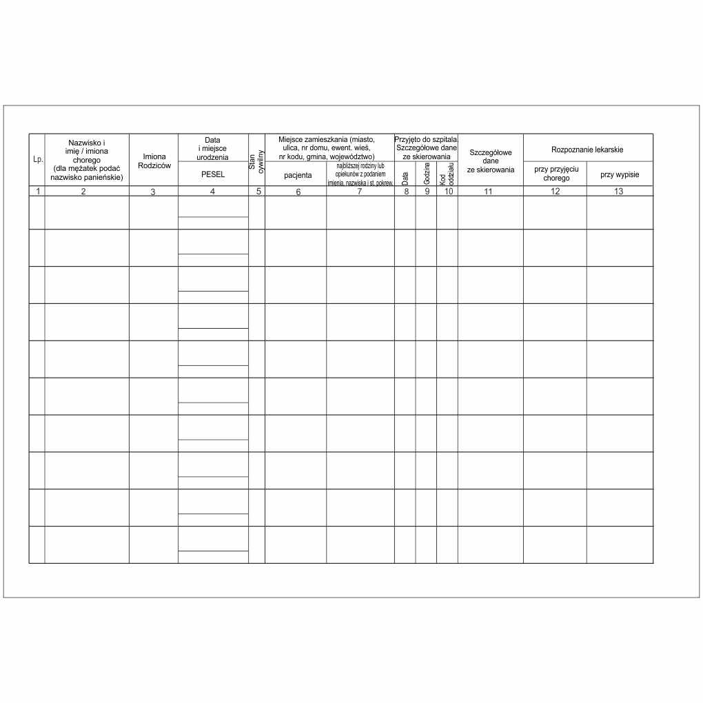 - Nazwisko i imię / imiona chorego (dla mężatek podać nazwisko panieńskie)