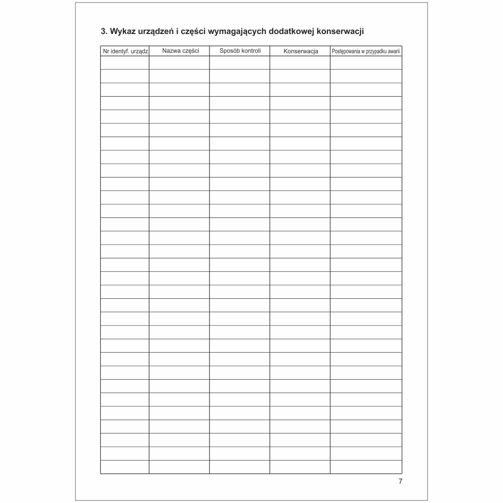 - Wykaz urządzeń i części wymagających dodatkowej konserwacji (31 wpisów)