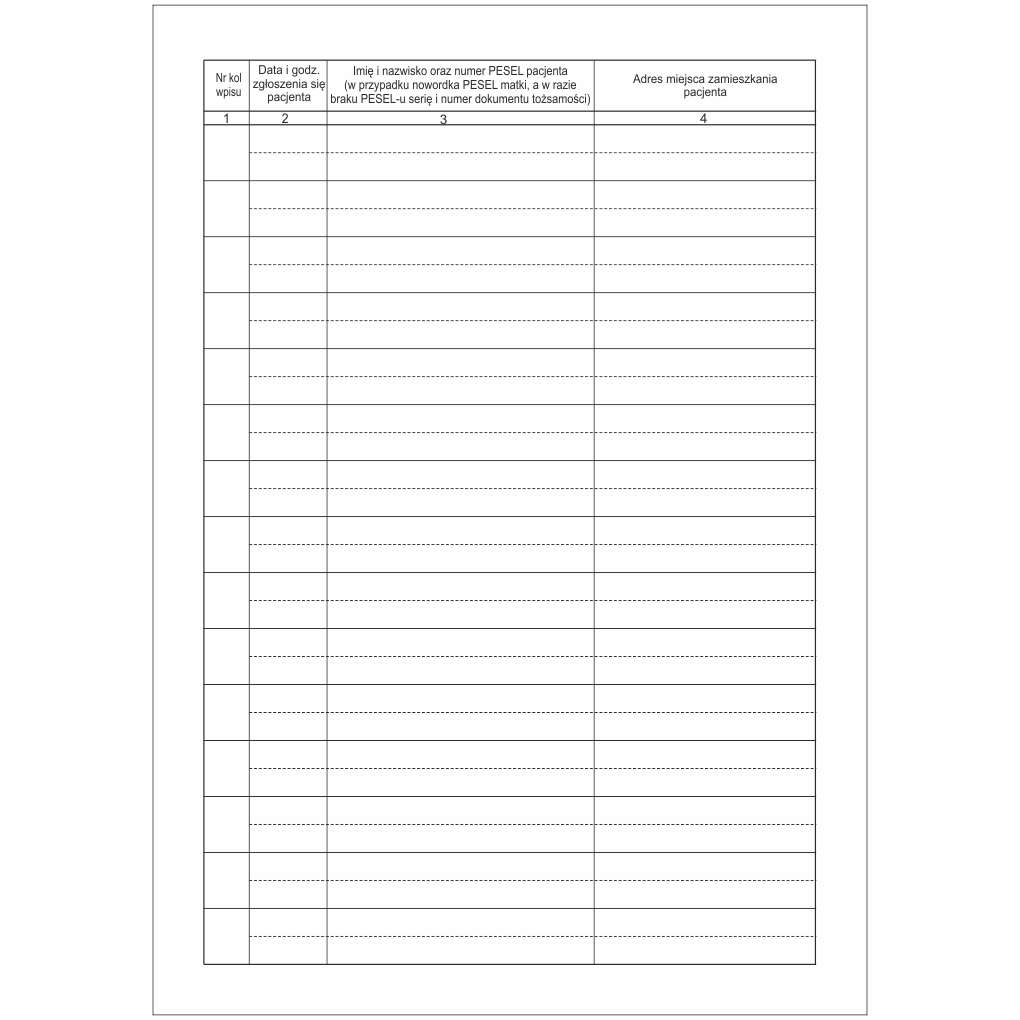 Księga służy do rejestracji pacjenta i jego podstawowych danych, a nie wykonanych świadczeń medycznych i diagnostycznych. Dlatego równolegle z księgą przyjęć pacjentów poszczególne podmioty medyczne mają obowiązek prowadzenia rejestrów świadczonych przez nie usług medycznych.