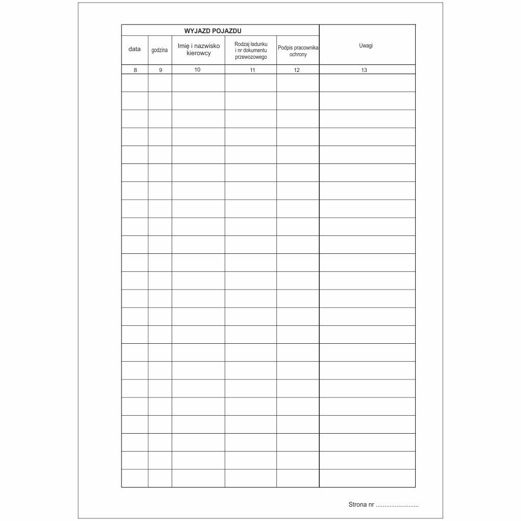 Książka jest przeznaczona dla firm i działów ochrony, służy do rejestracji pojazdów które wjeżdżaja na teren objęty nadzorem.