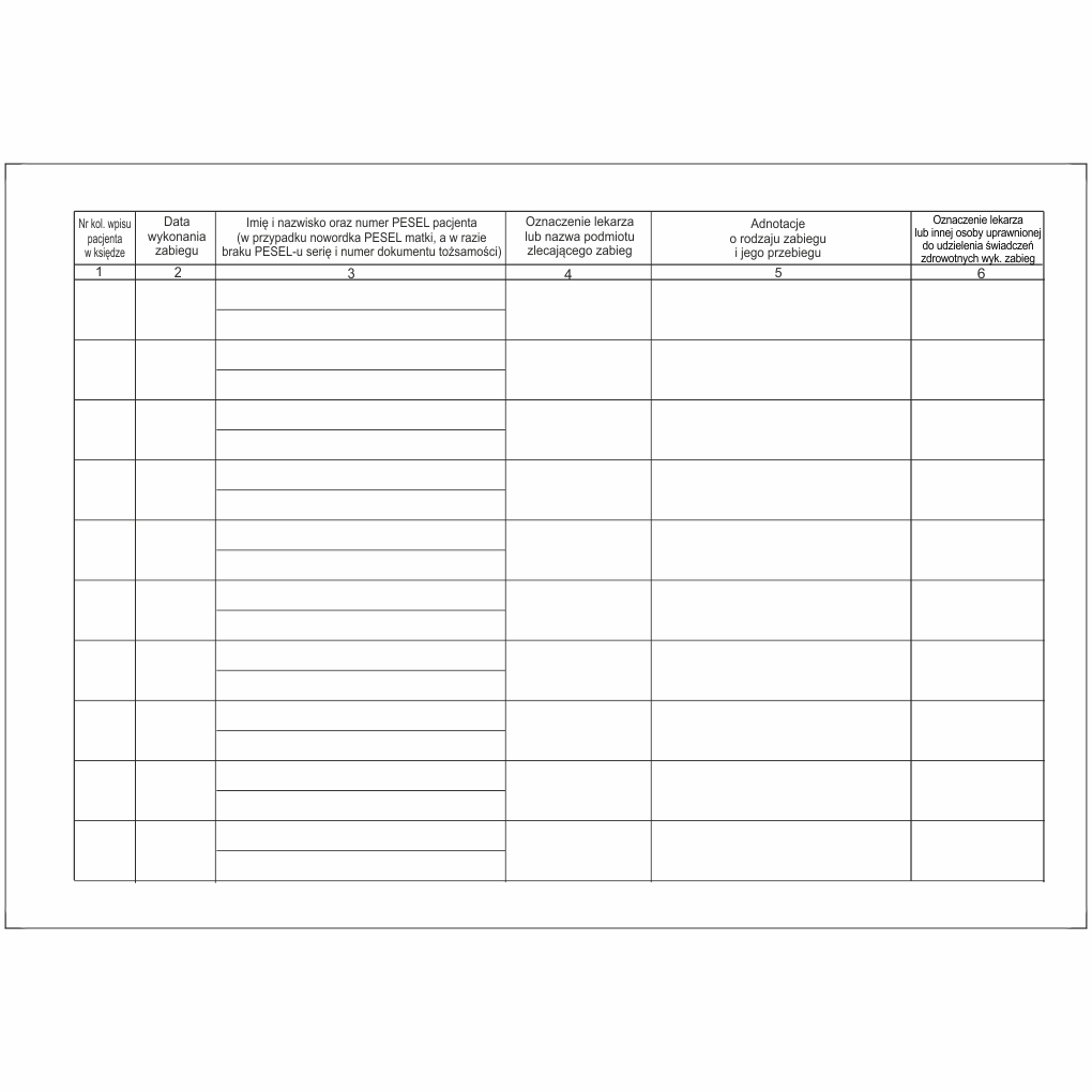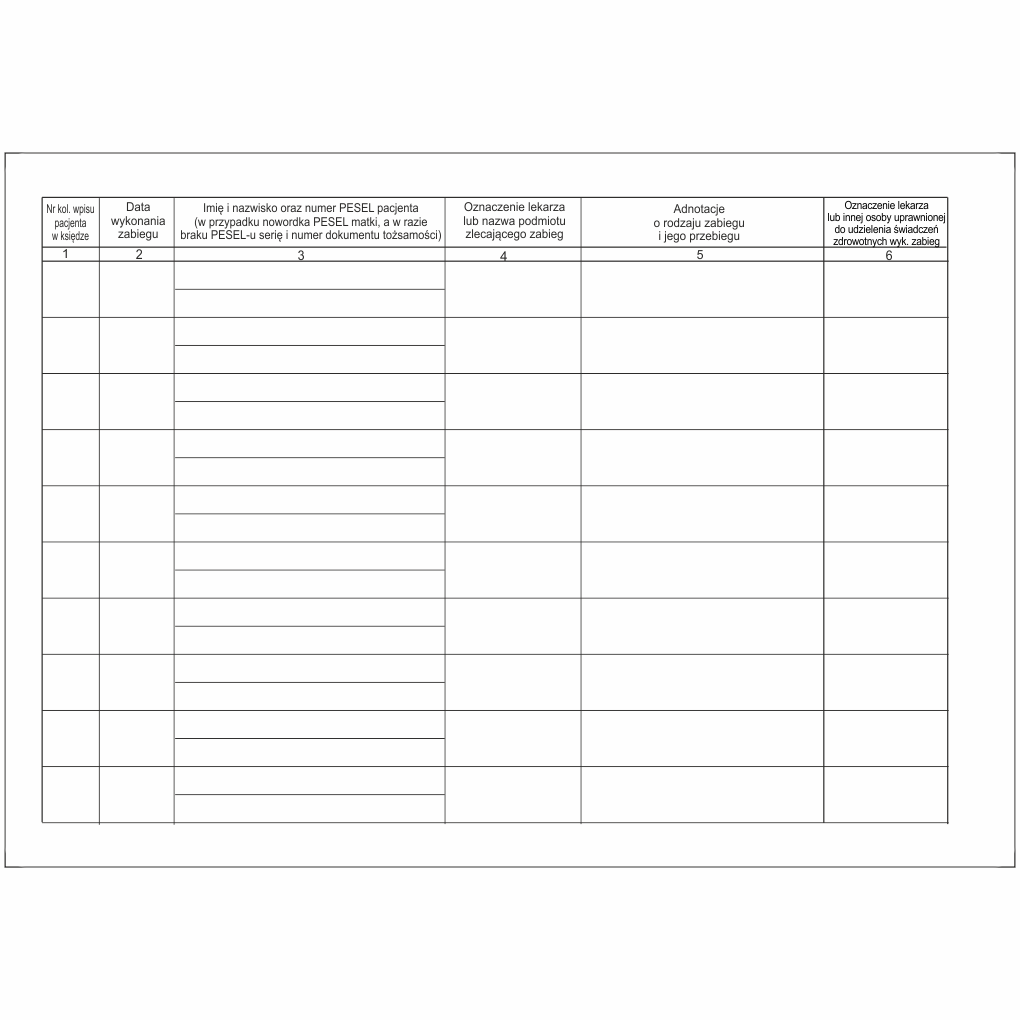 Książka jest przeznaczona do ewidencjonowania zabiegów medycznych dokonywanych przez lekarzy w szpitalach. Treść książki oraz sposób jej prowadzenia określa: