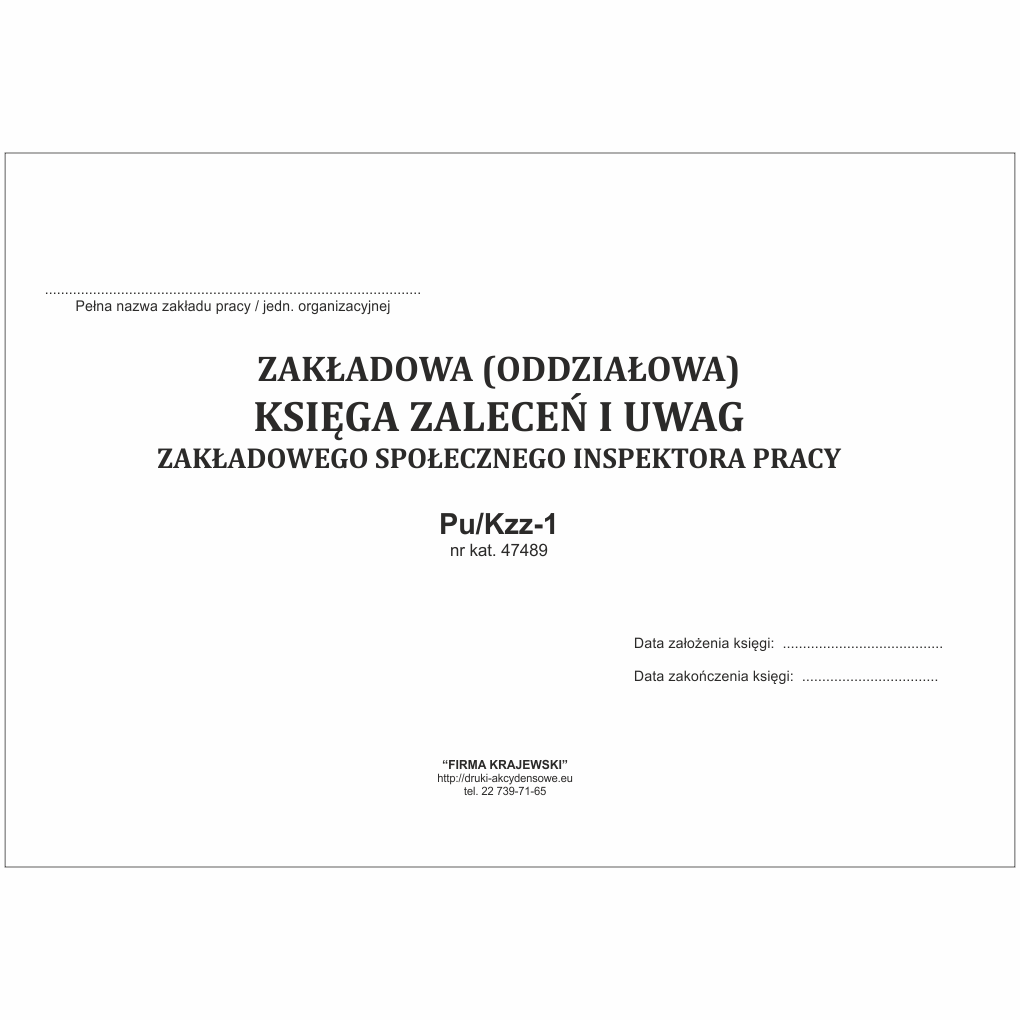 Zakładowa / oddziałowa księga zaleceń i uwag zakładowego społecznego inspektora pracy [Pu/Kzz-1]