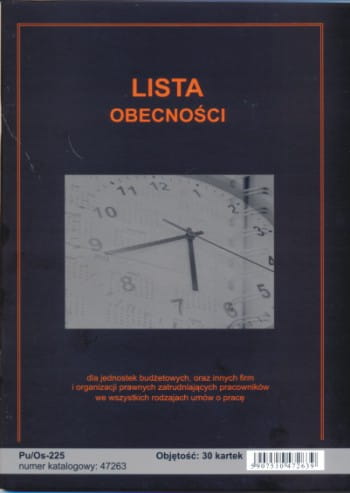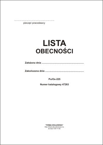 Przedmiotem tej transakcji jest druk lista obecności, w 2 wersjach: zeszyt 30 kartr lub blok 100 kart.