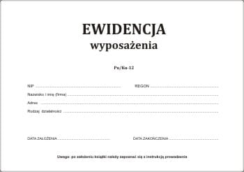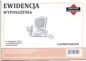 Przedmiotem tej transakcji jest ewidencja wyposażenia. Druk wykonany w oprawie zeszytowej - albumowej, format A5 (210 x 148 mm), objętość 20 kartek.