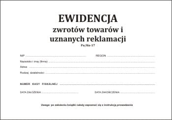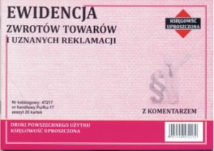 Ewidencja zwrotów towarów i uznanych reklamacji [Pu/Ku-17]
