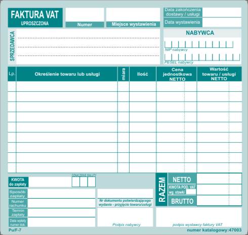 - Faktura VAT Uproszczona 2/3A5 - 9 pozycji / Pu/F-7