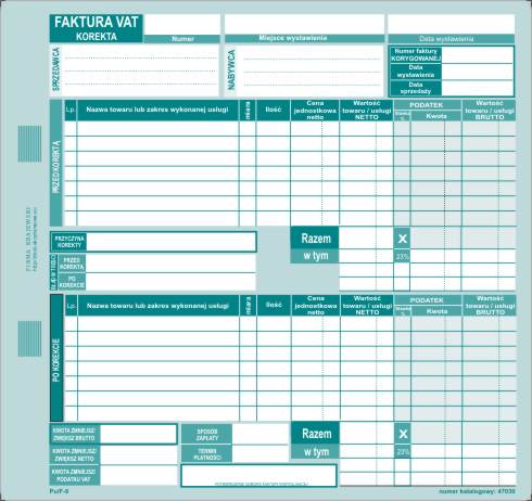 - Faktura VAT KOREKTA 2/3A4 - 7 pozycji / Pu/F-9