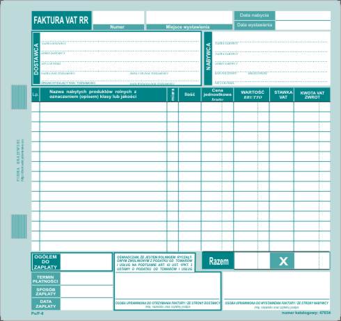 - Faktura VAT RR 2/3A4 - 15 pozycji / Pu/F-8
