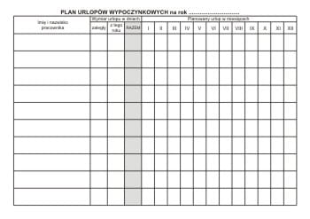 - Plan urlopów wypoczynkowych na rok ............. (1 tabela)
