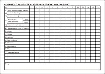 - Zestawienie miesięczne czasu pracy pracownika za miesiąc .................... (12 tabelek)