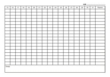 - Roczna karta ewidencji obecności w pracy za rok ..................... (1 tabela)