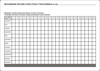 - Zestawienie roczne czasu pracy pracownika za rok ..................... (1 tabela)