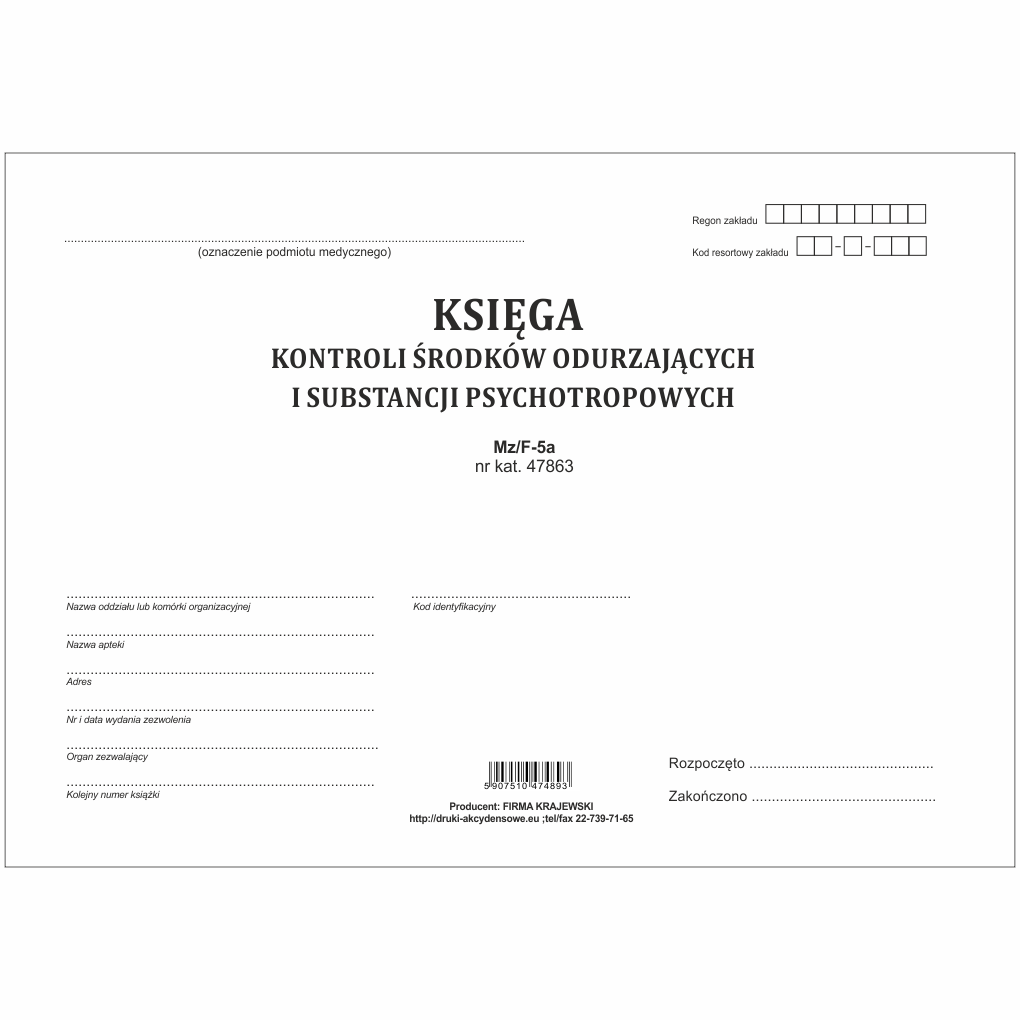 Księga kontroli środków odurzających i substancji psychotropowych [Mz/F-5a]