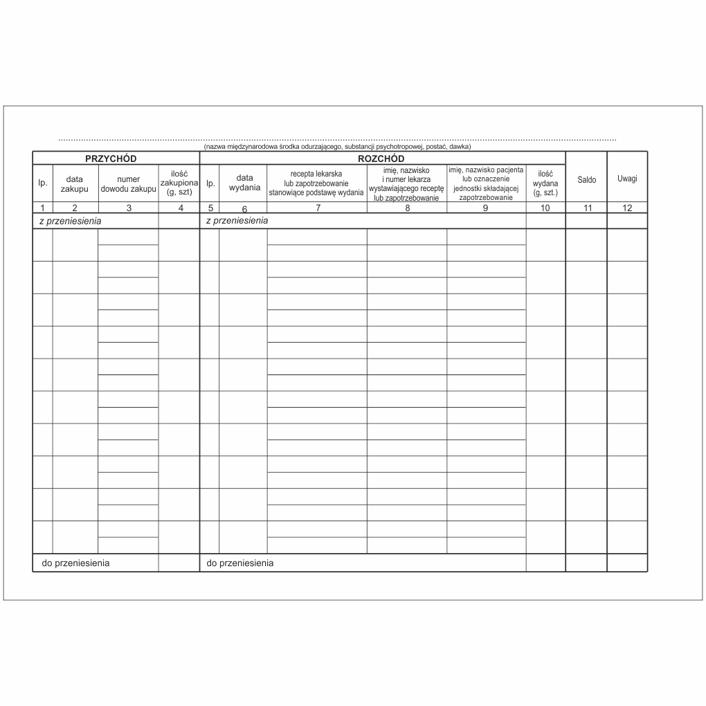 Księga jest przeznaczona do szczegółowego ewidencjonowania przychodów i rozchodów środków odurzających i psychotropowych w podmiotach medycznych.