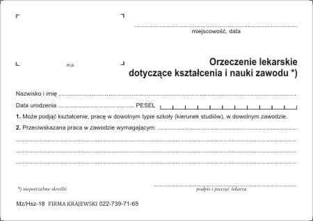 Orzeczenie lakarskie dotyczące kształcenia i nauki zawodu [Mz/Hsz-18]