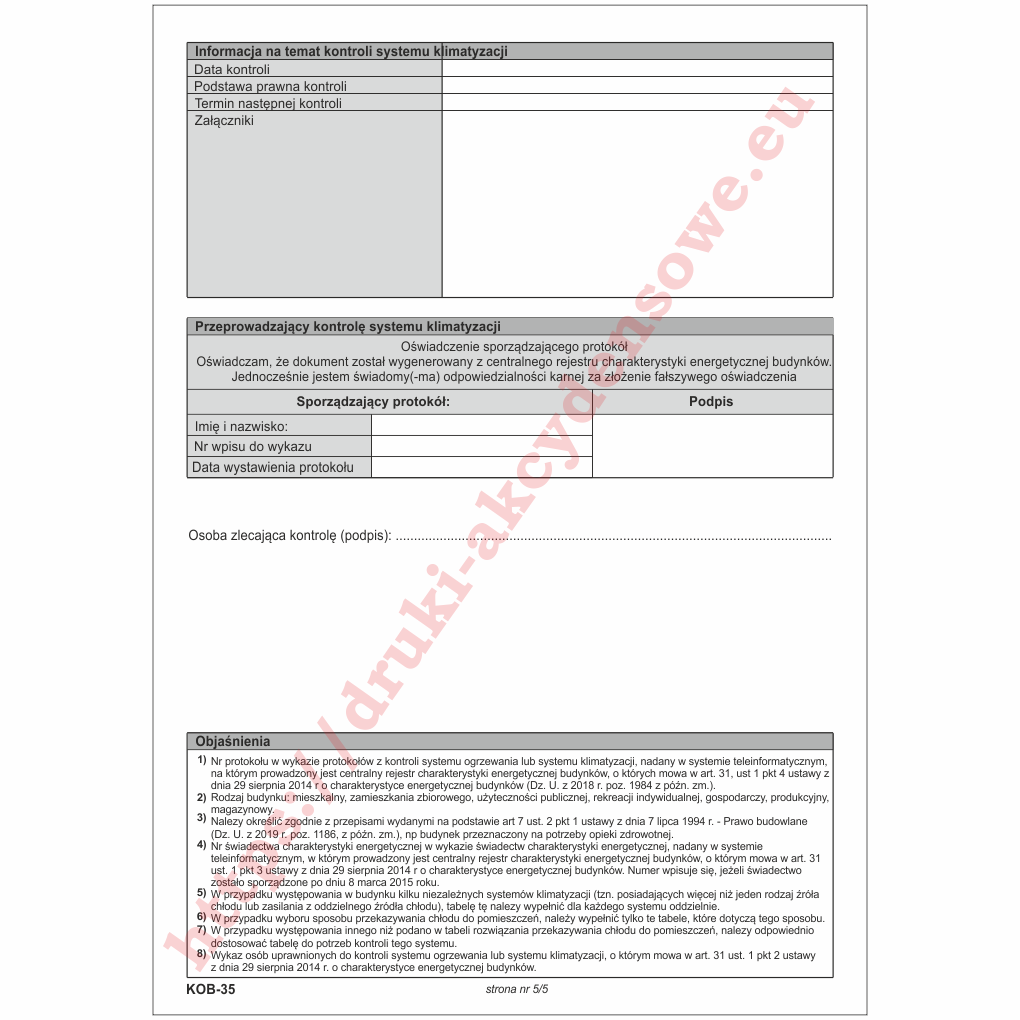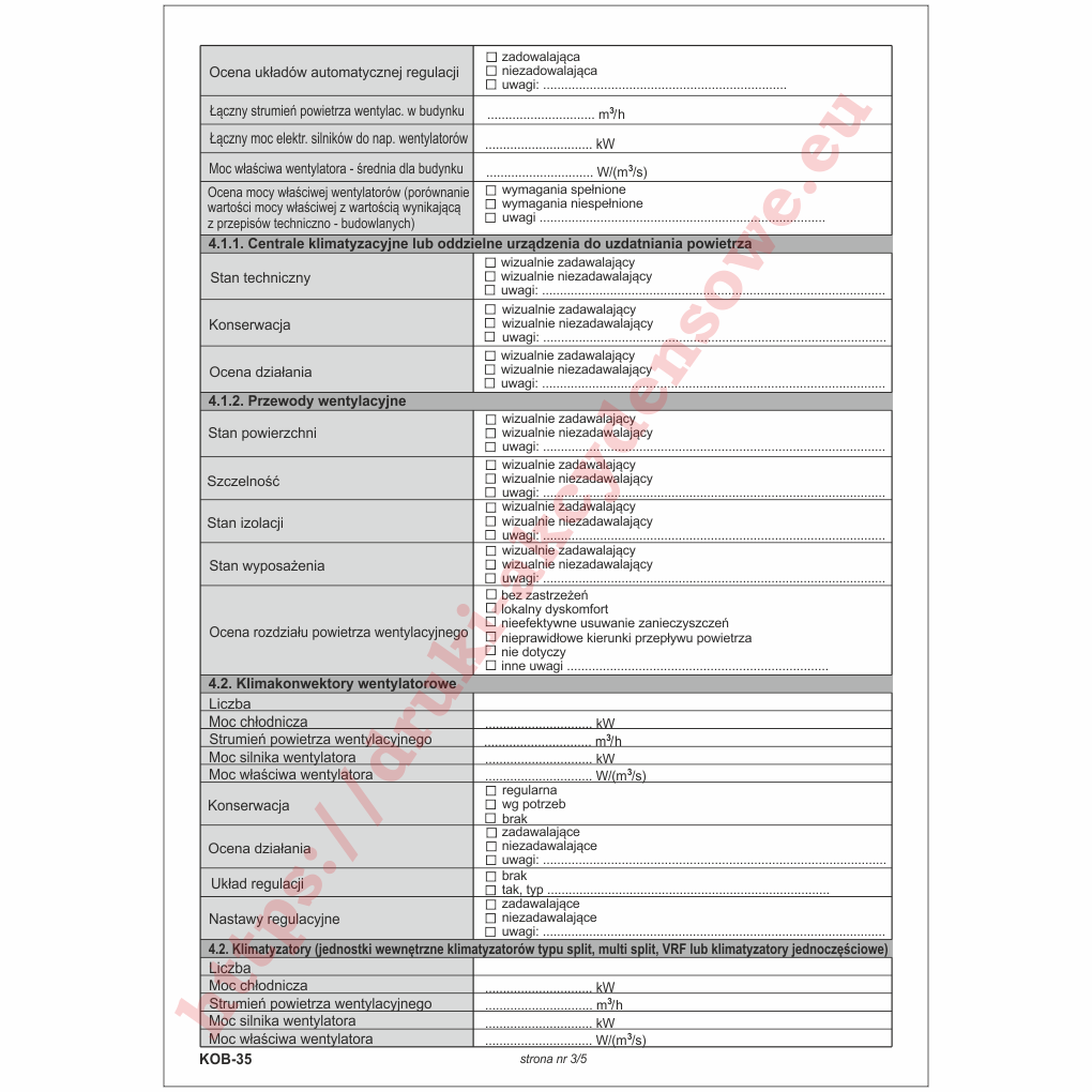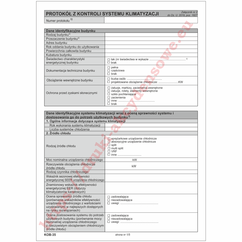 Protokół okresowej kontroli stanu technicznego systemu klimatyzacji [KOB-35]