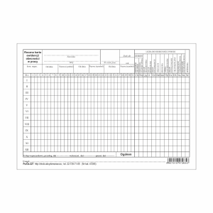 Kartoteka przeznaczona do ewidencjonowania dni przepracowanych i wolnych od pracy dla danego pracownika oraz przyczyn ewentualnych nieobecności. Kartoteka jest 2-stronna i jest przeznaczona dla 1 pracownika na okres 2 lat. Obowiązek prowadzenia tej kartoteki wynika z kodeksu pracy.