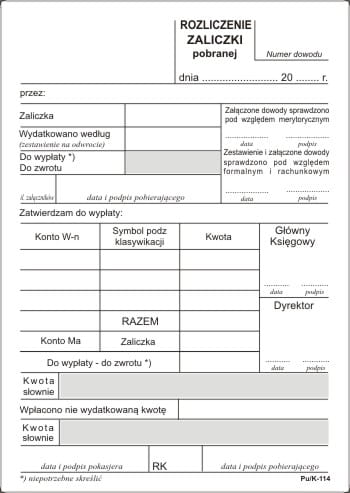 Rozliczenie zaliczki [Pu/K-114]