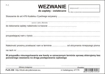 Wezwanie do zapłaty ostateczne / A6 samokopiujące [Pu/K-350]