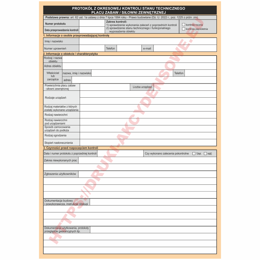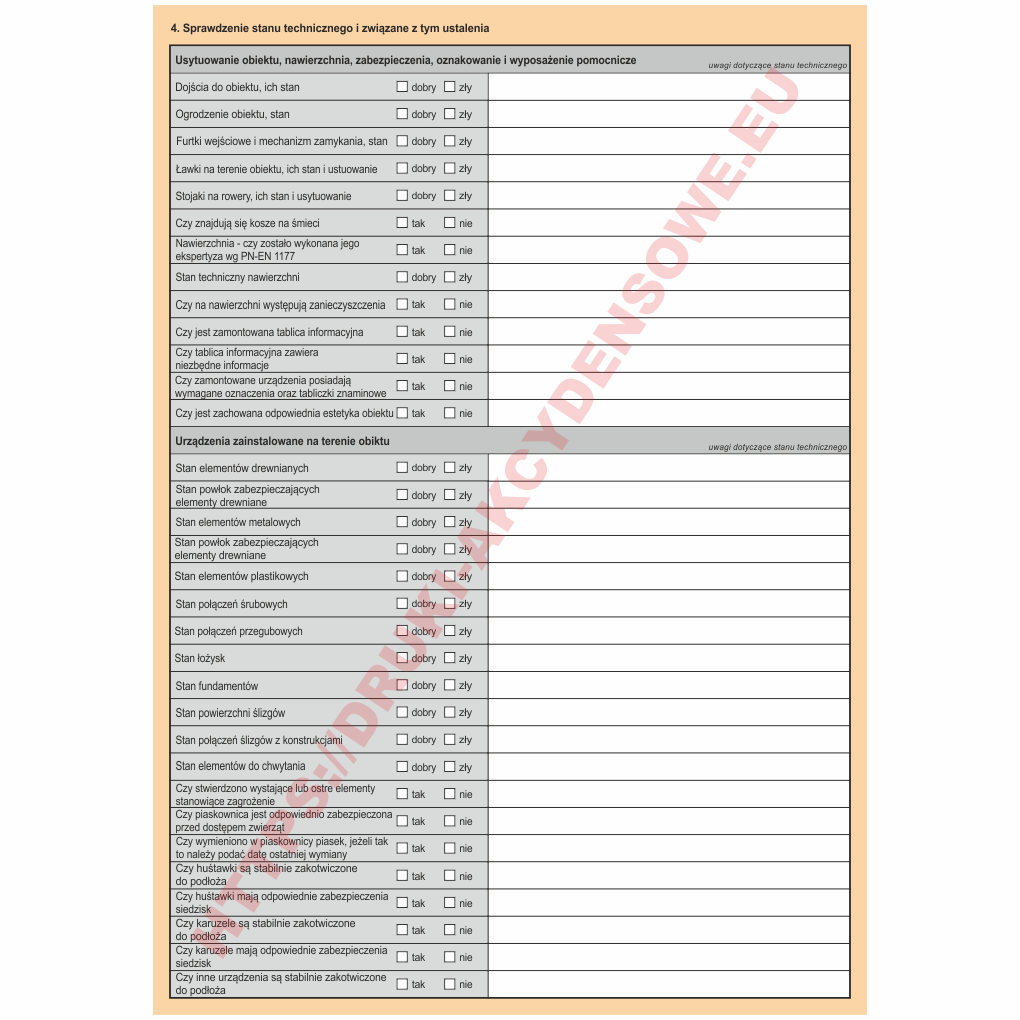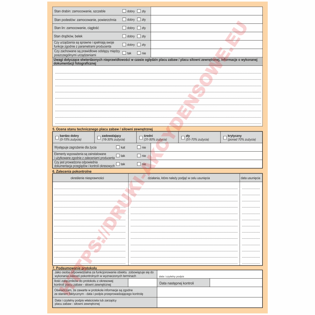 Protokół z kontroli kresowej placu zabaw - siłowni zewnętrznej [KOB-39] wersja elektroniczna