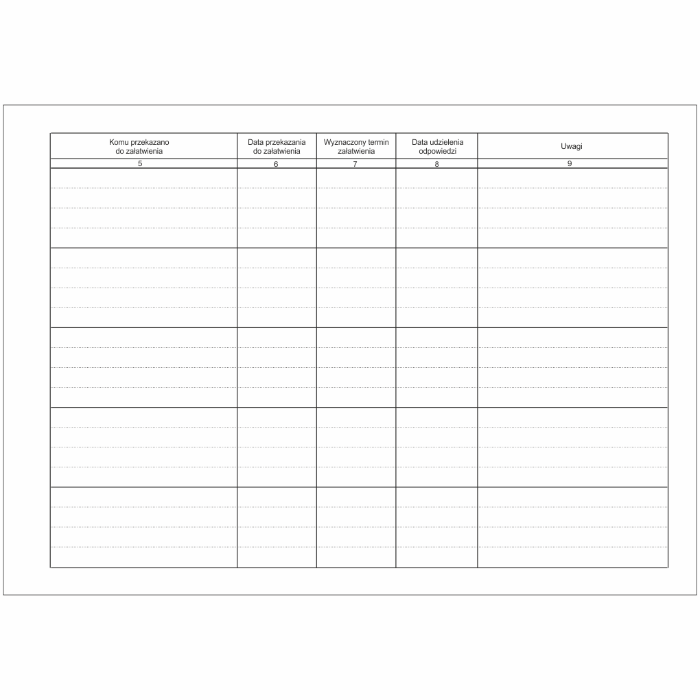 - Data przekazania do załatwienia