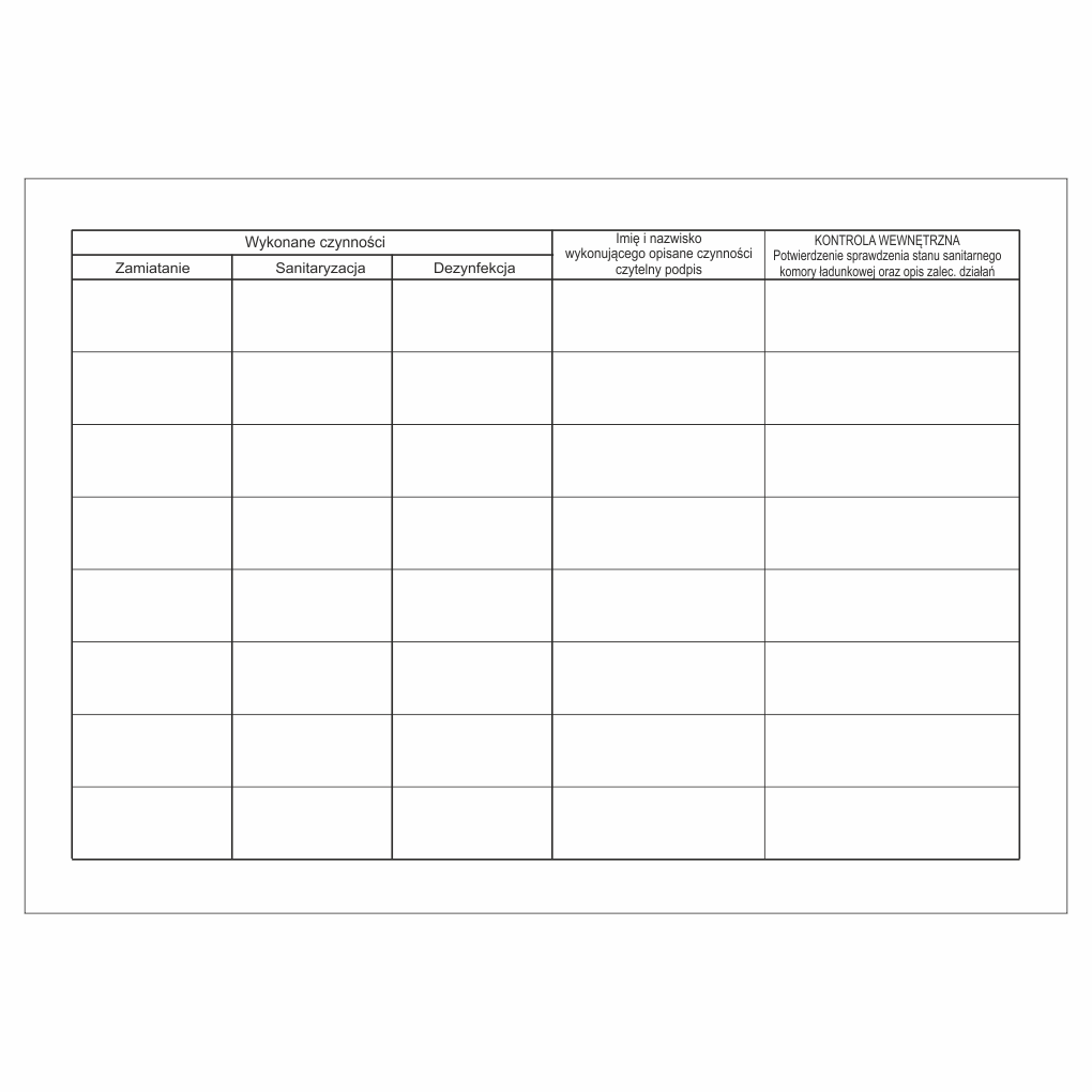 Rejestr mycia i dezynfekcji komory ładunkowej środka transportu