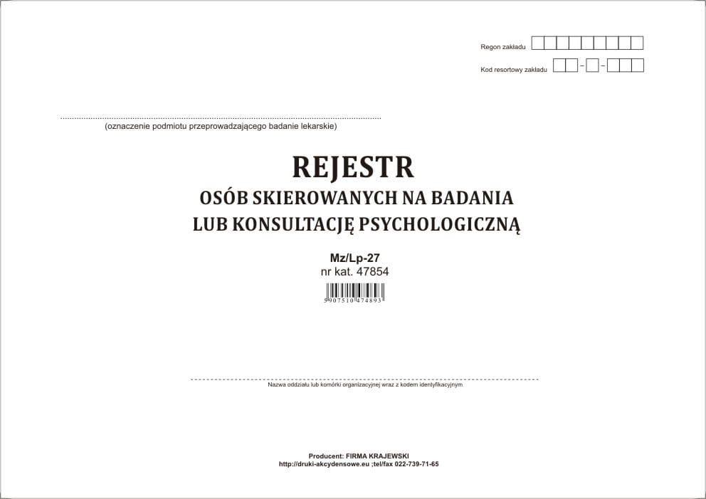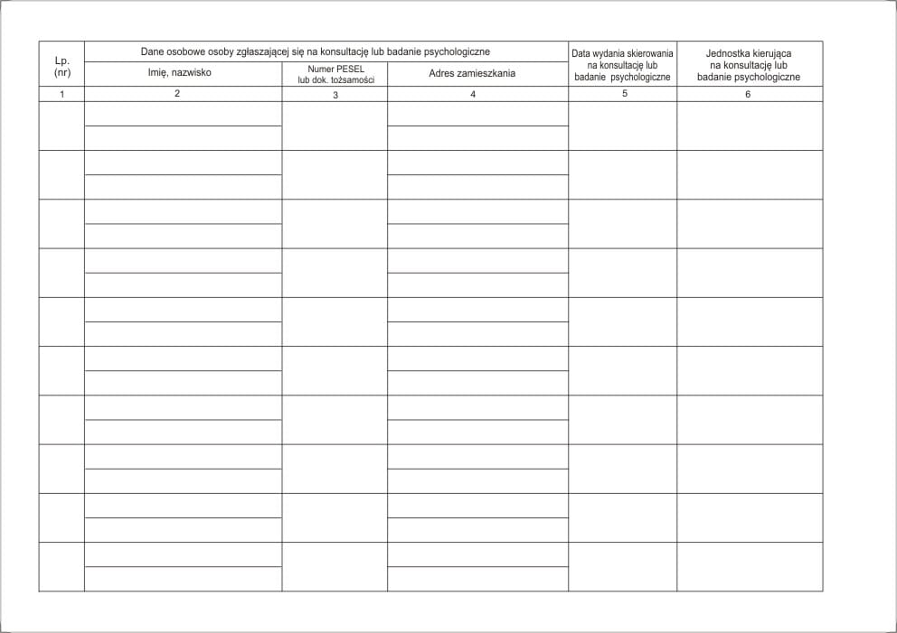 Rejestr osób skierowanych na badania lub konsultację psychologiczną [Mz/Lp-27]