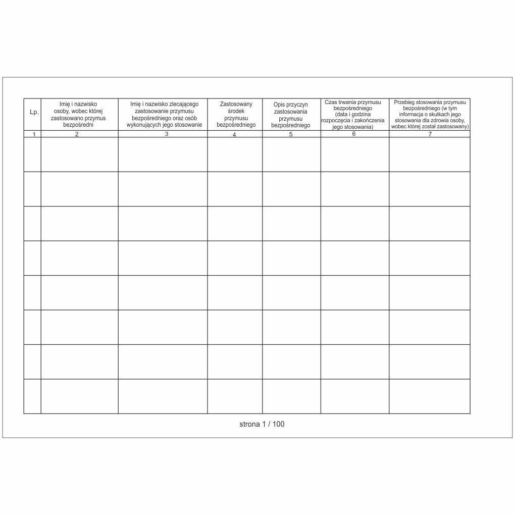 Rejestr przypadków zastosowania przymusu bezpośredniego [Mz/Ps-10]