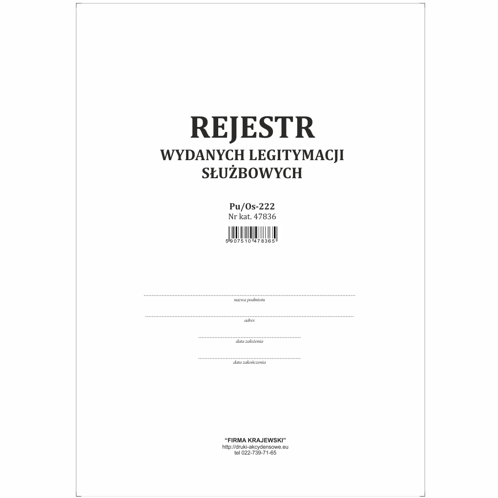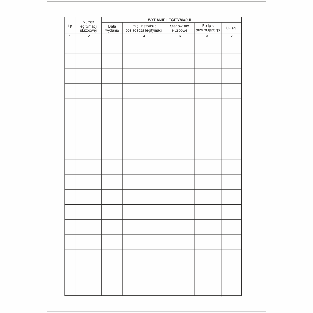 Książka jest przeznaczona do ewidencjonowania wydawanych i zwracanych legitymacji służbowych. Książka jest dostosowana do rejestracji wszystkich rodzajów legitymacji służbowych.